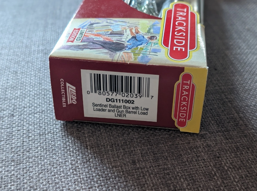Days Gone Trackside DG111002 Sentinel Ballast Box, Low Loader & Gun Barrel LNER, 1/76 scale, OO gauge. Very good condition in original box.