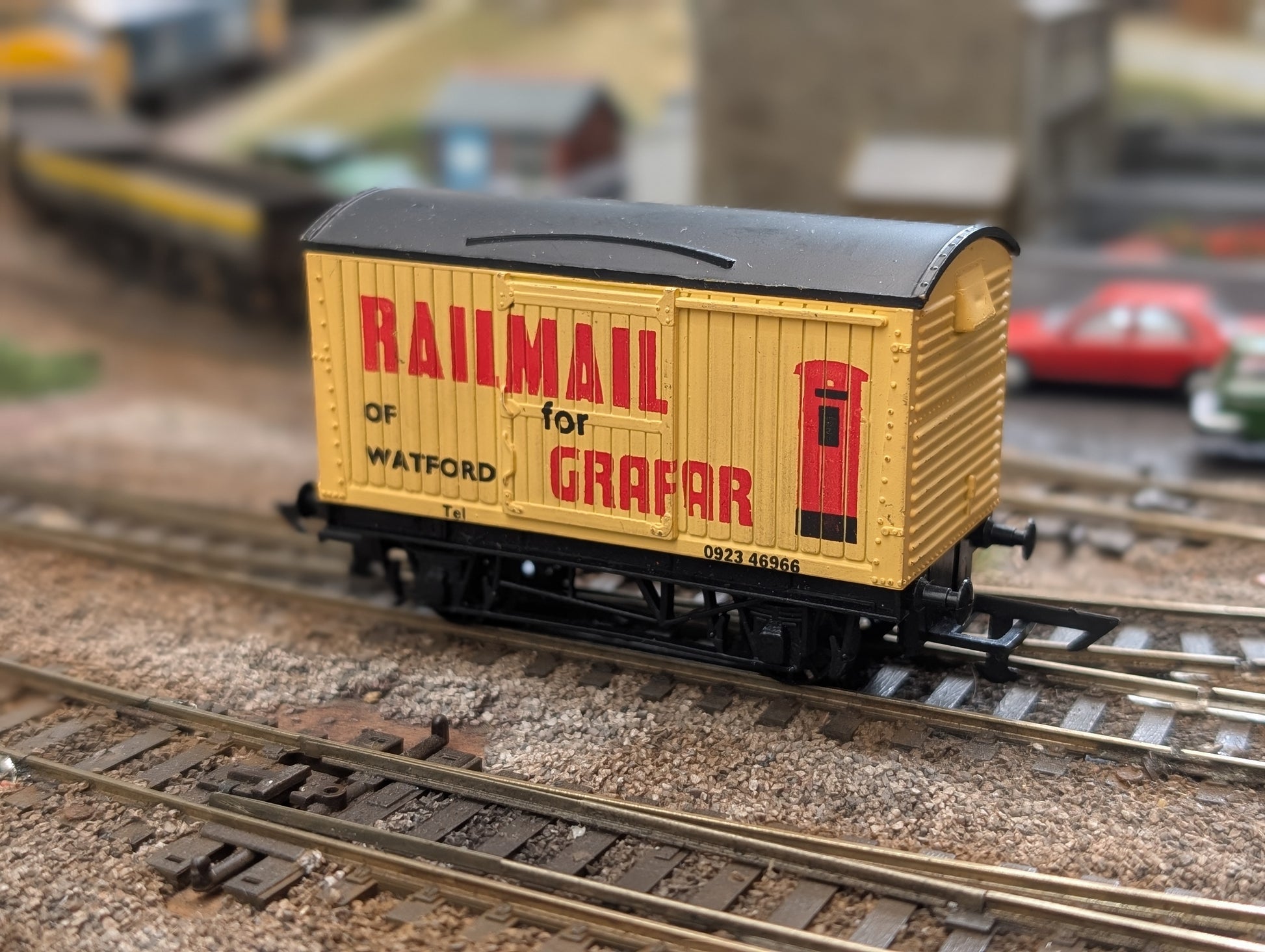 Pre-owned OO gauge Graham Farish box van "Railmail of Watford for Grafar" unboxed, as seen