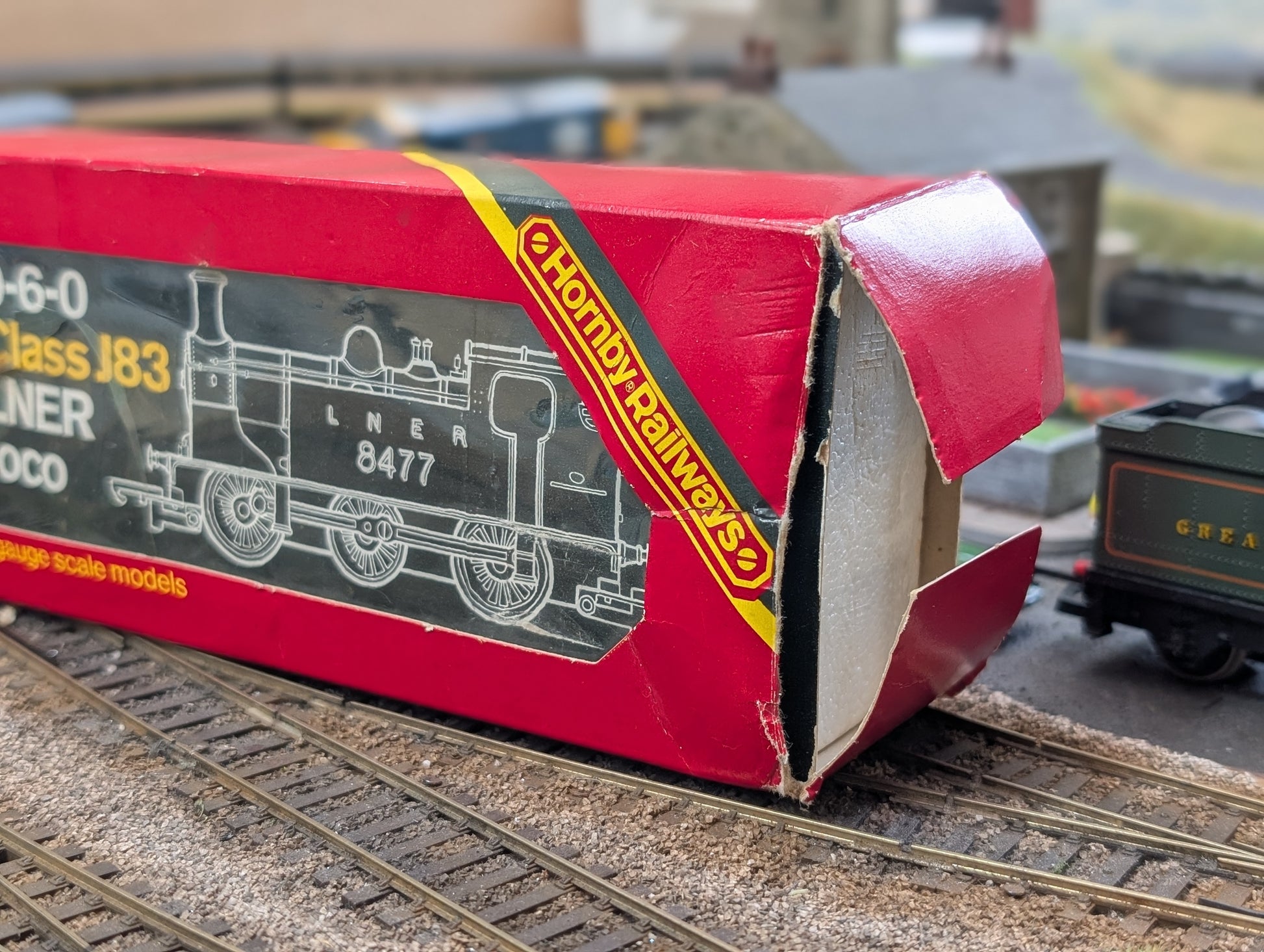 Pre-owned OO gauge Hornby R252 Class J83 0-6-0T 8477 in LNER green boxed